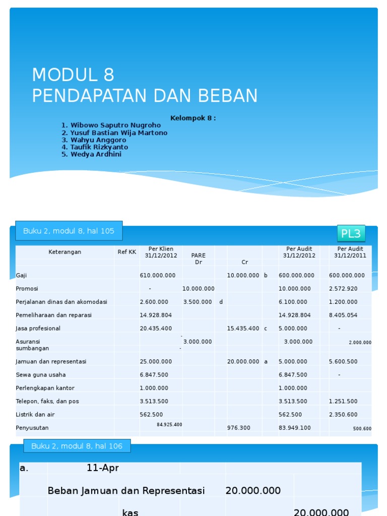 Praktikum audit modul 7 siklus perolehan dan pembayaran aset tetap bag 1. Modul 8 pendapatan dan beban new. 08/01/2013 22/01/2013 31/12/2012k a s d a n set a r a k a s dikerjakan oleh no klien pt. Kalo ada kunci jawaban yang edisi 3 pt peta dibagi donk ka. Auditing buku sukrisno agoes mata kuliah lab.
